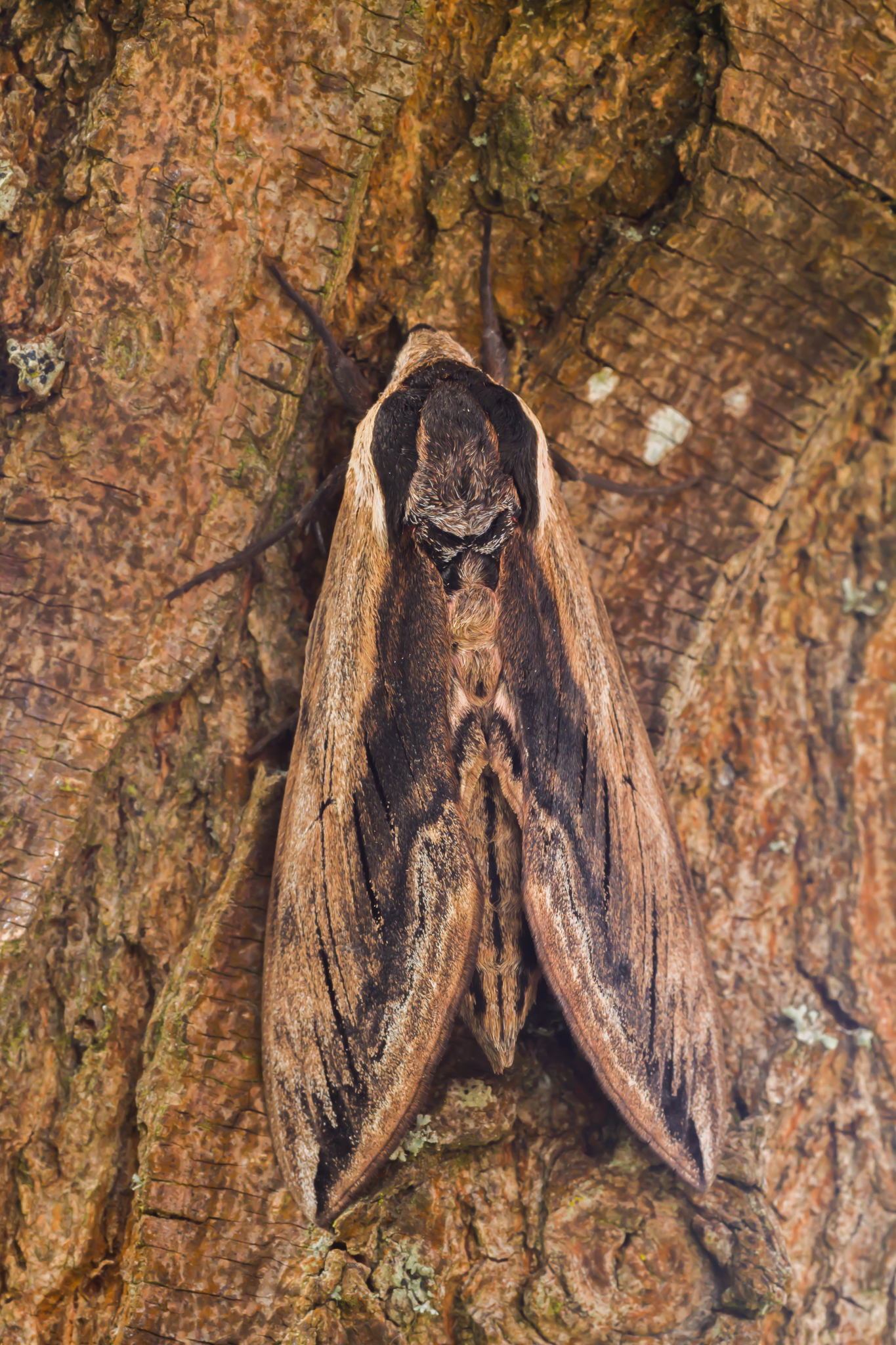 De dennenpijlstaart (S. pinastri) is kleiner en heeft geen roze banden op het achterlijf. Zie ook de windepijlstaart (Agrius convolvuli).